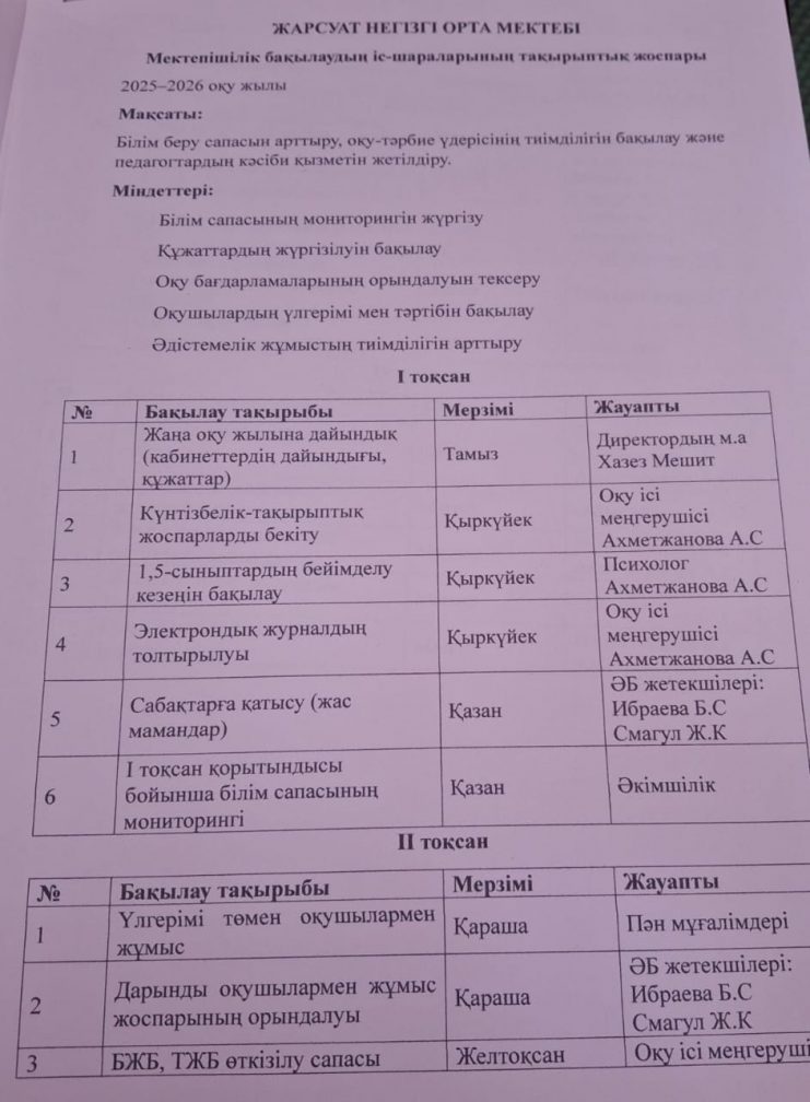 Мектепшілік бақылау 2025-2026